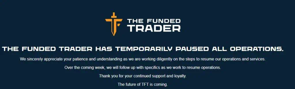 The Funded Trader is a prop firm that belongs to Easton Consulting Technologies. They shortly stated that the firm: “has temporarily ceased all operations, including new purchases, effective immediately.”